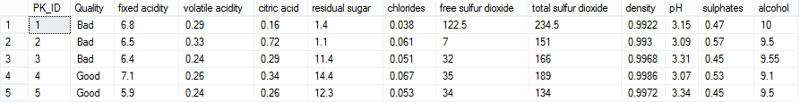 la qualité des vins n’ayant pas encore été prédite, cette tache sera transmise au web service via un script C# qui enverra les caractéristiques des vins au Web Service. Celui-ci renverra la prédiction faite par le modèle. Enfin la dernière sera d’actualiser la colonne Quality (grâce à l’identifiant PK_ID) :