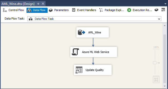 Le package SSIS est des plus simples, il lit la table AML_WINE,